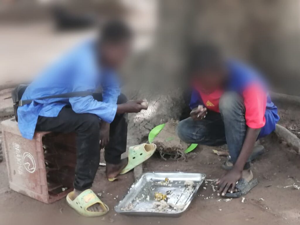 Ils tendent la main, des boites au cou à l’aide de cordes, murmurent quelques mots à peine audibles ou restent figés de longues minutes à proximité des tables, les yeux rivés sur les assiettes. Il est 13 heures ce mercredi 13 août 2025 dans un restaurant populaire du centre-ville de Gaoua. L’atmosphère est animée. Les serveuses se déplacent rapidement entre les tables, les clients discutent, rient, commandent. Dans ce ballet ordinaire de la vie urbaine, un garçon d’à peine dix ans s’approche timidement d’une table. Il ne parle pas. Il observe. Son regard est fixé sur les restes de nourriture. Lorsque la cliente se lève, il se précipite sur l’assiette et termine en quelques bouchées le riz à la sauce tomate abandonné. La scène est brève, presque invisible pour certains, mais elle en dit long sur une réalité quotidienne.