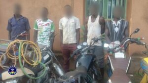 Grâce à la collaboration des populations, les investigations menées ont permis d’appréhender cinq (05) membres du gang et saisir plusieurs objets parmi lesquels un tricycle, plus d’une dizaine de motos et une machine de lavage de motos.